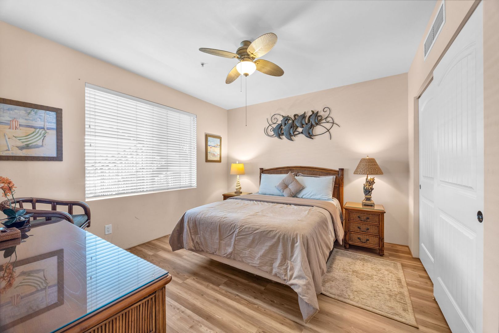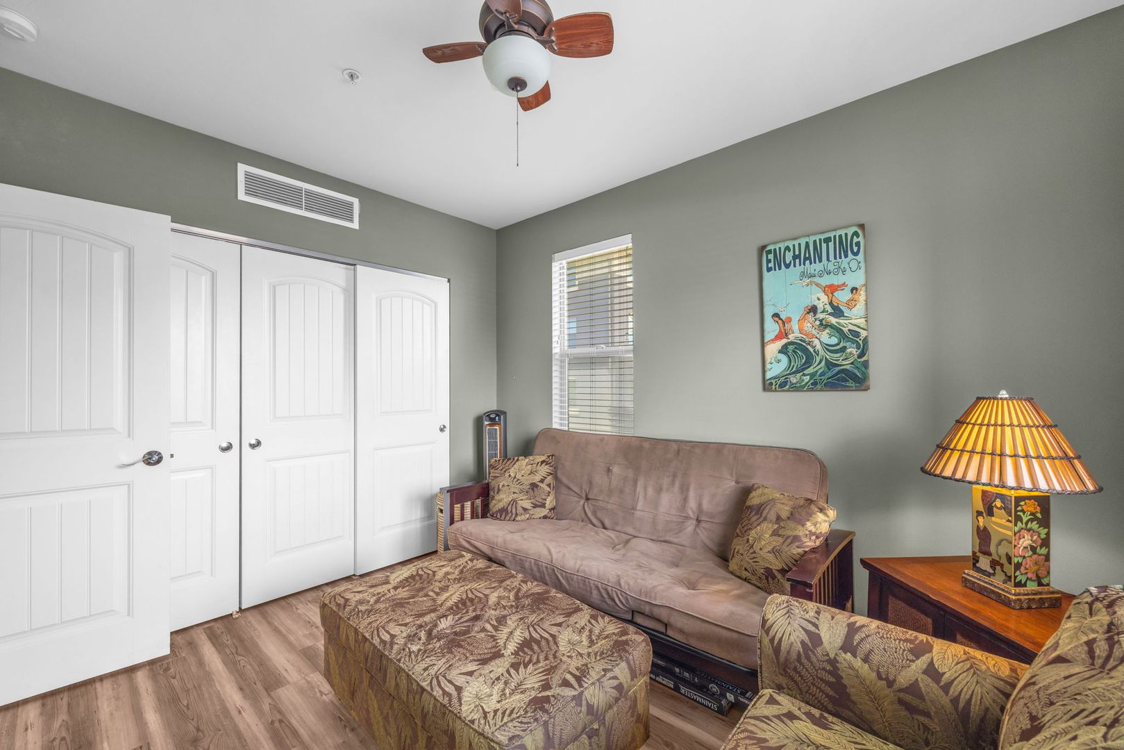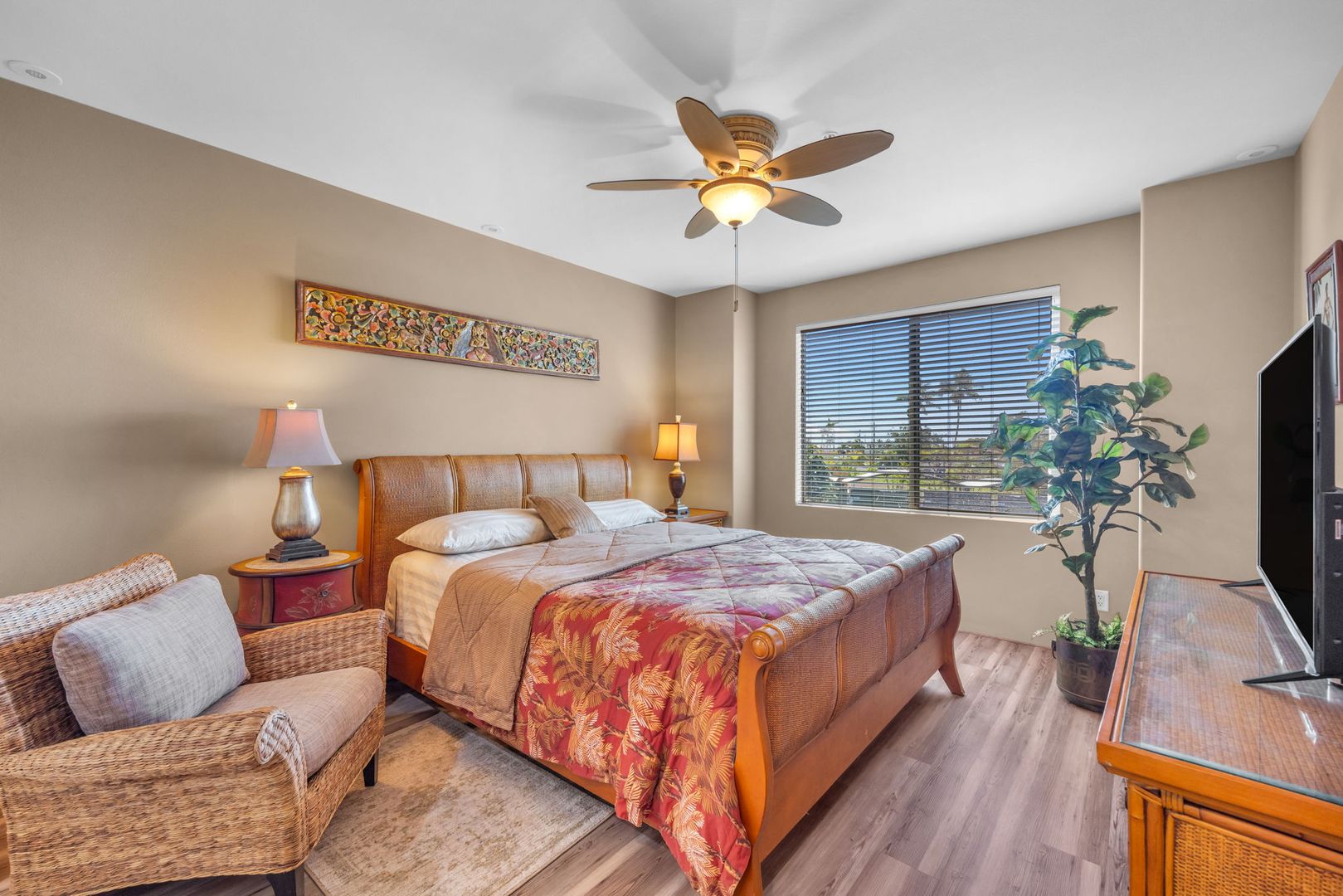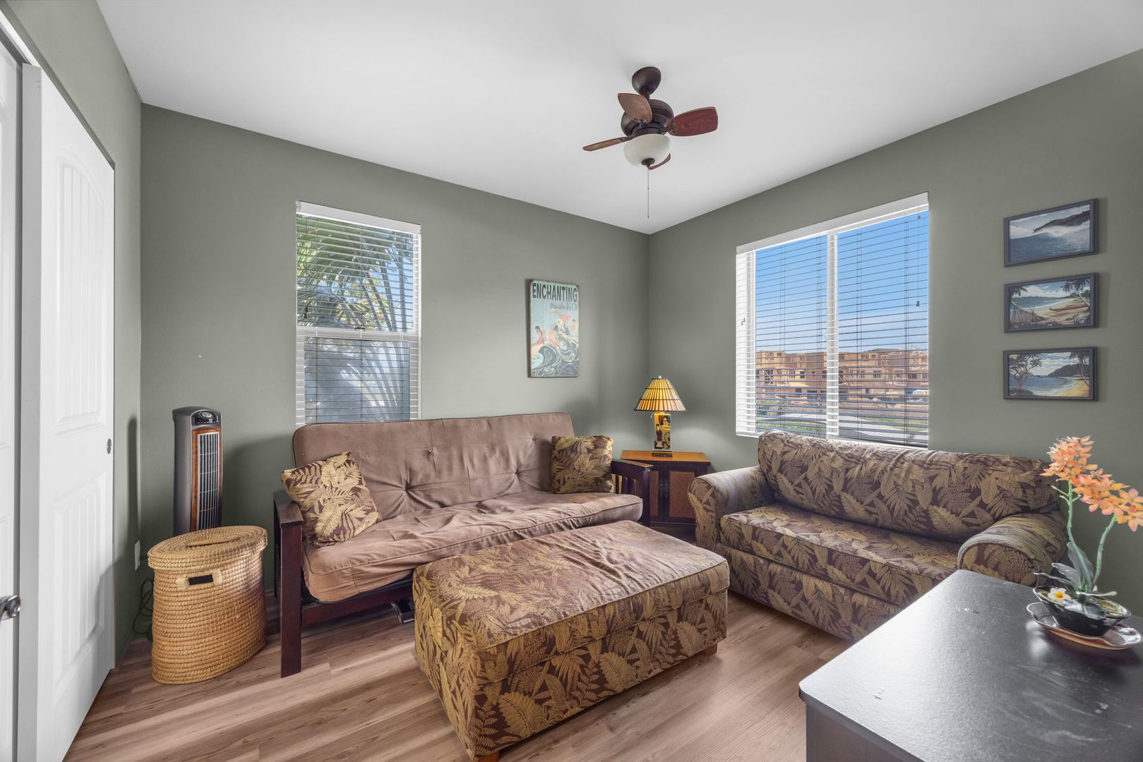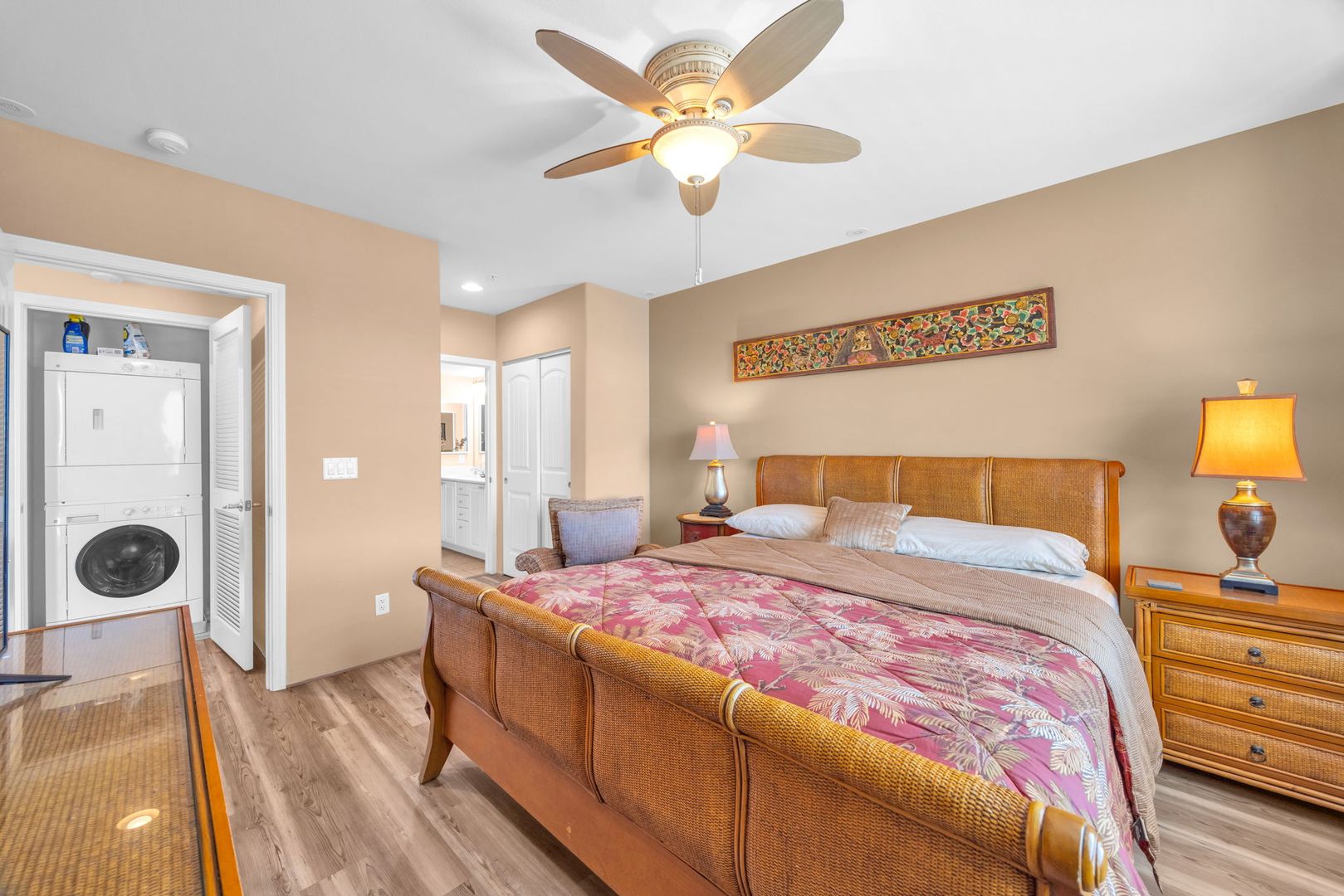 The unit features an open-concept layout with tile and PVL flooring throughout, offering a clean, modern feel and easy maintenance. The well-equipped kitchen includes a dishwasher, microwave, oven, refrigerator, and garbage disposal. Stay cool year-round with central A/C and ceiling fans, and enjoy the convenience of in-unit laundry. Use your private lanai to relax and unwind and the end of a long day.