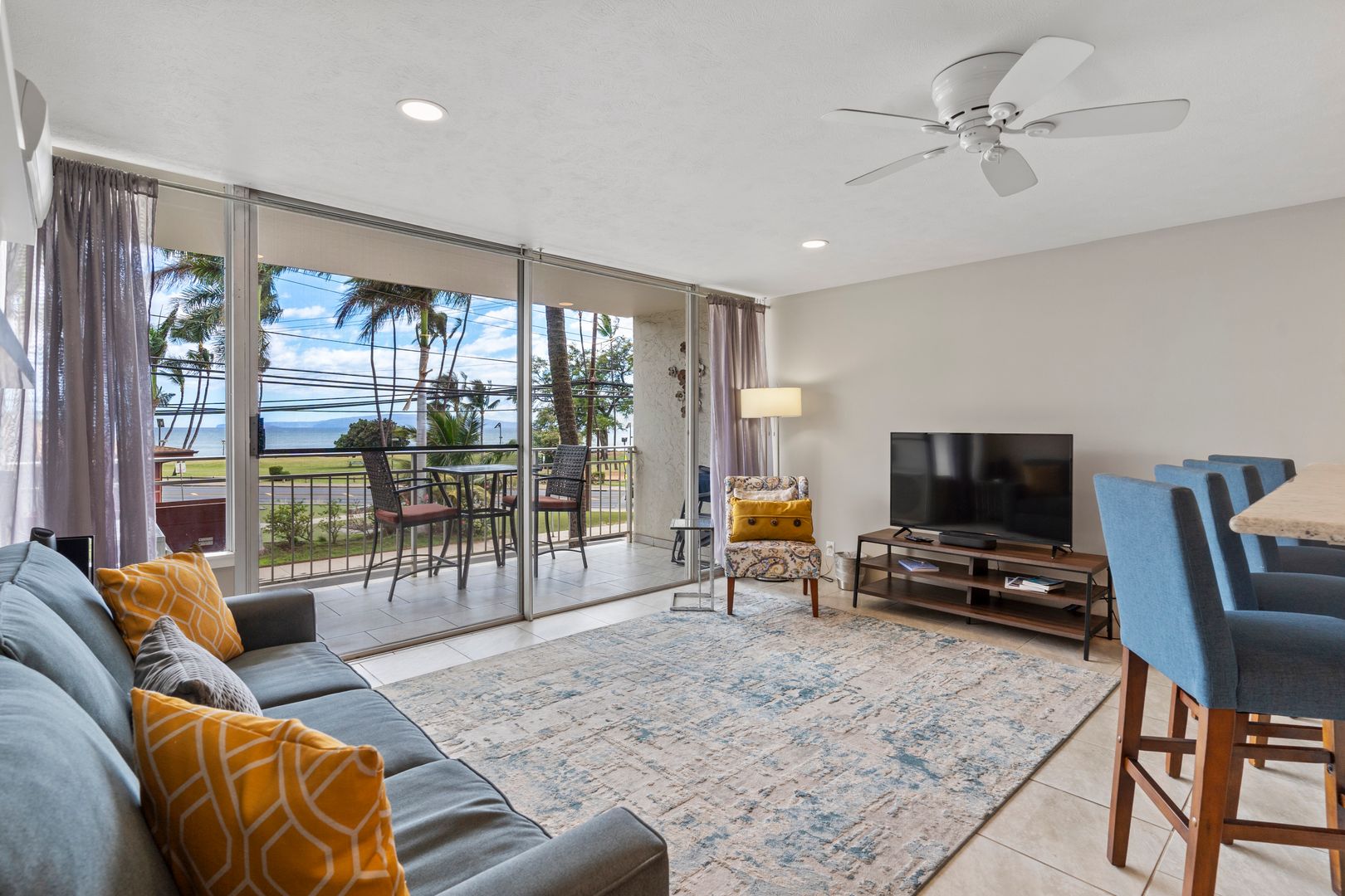 Enjoy panoramic ocean views and the cooling ocean breeze from your lanai and living area, creating the perfect backdrop for relaxed Maui living. Live like you're on vacation, every day! The open-concept layout allows for seamless flow between spaces, ideal for both everyday living and entertaining. Whether you're starting your morning with coffee overlooking the water or winding down after a beach day, this home delivers a true Maui lifestyle experience.